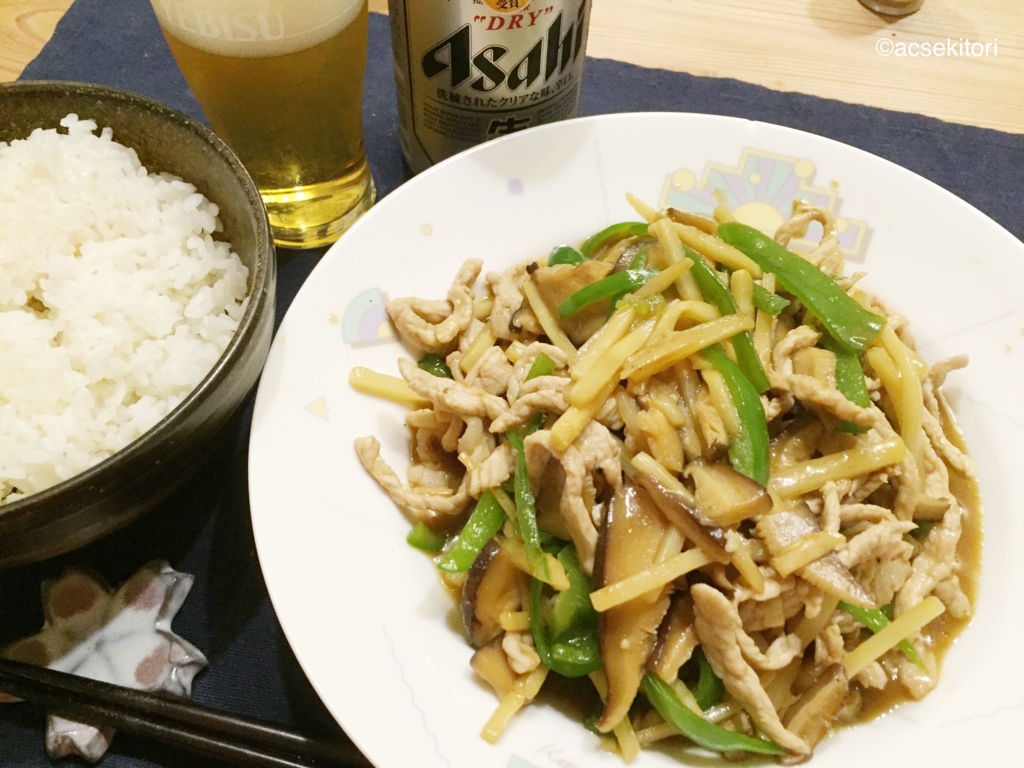 台風で引きこもっていましたので、すっかりメシブログになってきました。開き直って二連発。今宵の夕餉は、青椒肉絲です。普通は牛肉の細切り炒めでしょうが、私は豚モモ肉を使います。単に豚肉好きなのもありますが、脂の殆ど無い豚肉赤味にオイスターソースが染み渡り、噛み切る時のサクサク感がたまらないのです。